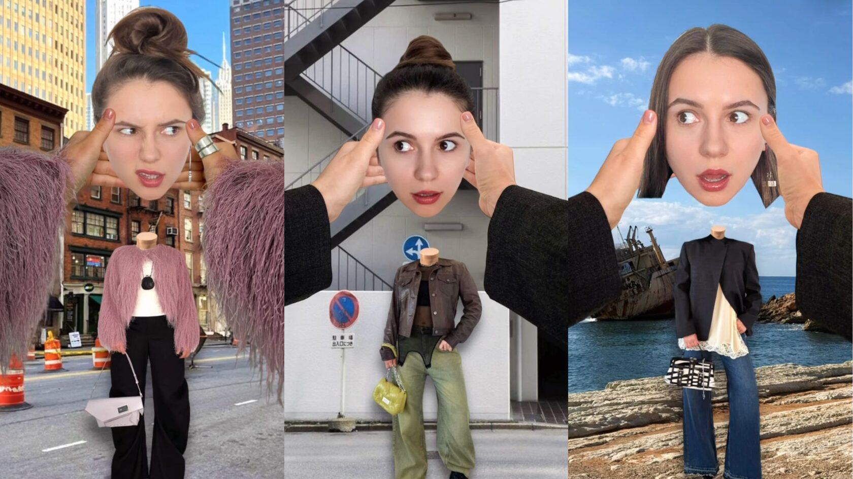 Some of social media’s most popular still-image trends are quickly being reimagined as video-first experiences. A prime example is the trend where a person’s mini clone would appear on their head, hang from a bag, or hold clothing as if it were picked up from the ground. While these moments started as clever static images, creators are now turning them into dynamic video content that adds depth, movement, and storytelling potential.